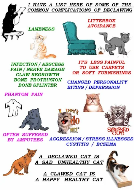 Something I wish more American veterinarians would counsel their human clients about is de-clawing cats. It is a practice seen as diabolical in other nations, it's only practiced in the US.